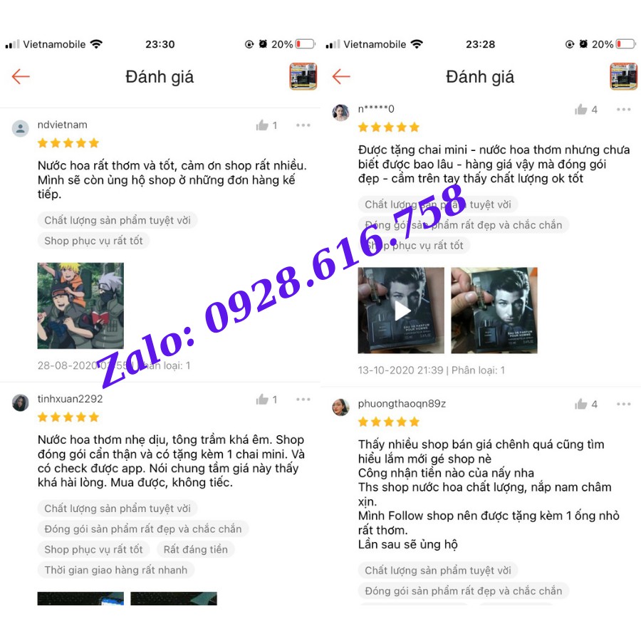 Miễn phí đổi trả nếu bán hàng kém chất lượng. Hiện tại [FREE SHIP] Nước Hoa Nam Nữ Cao Cấp BIeu EDP 100ml Cực Thơm đang được giảm giá chỉ còn 185,070đ. Số lượng có hạn hãy nhanh tay đặt khi còn hàng bạn nhé