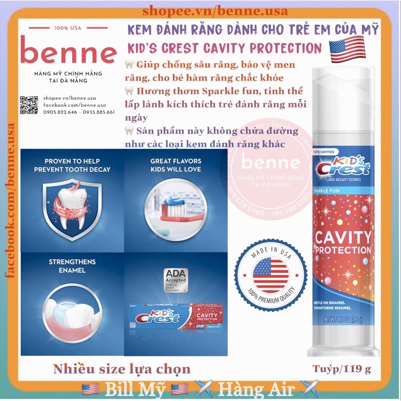Miễn phí đổi trả nếu bán hàng kém chất lượng. Hiện tại [🇺🇸 Bill Mỹ] Kem đánh răng cho bé Kid's Crest Cavity Protection 130g của Mỹ đang được giảm giá chỉ còn 92,070đ. Số lượng có hạn hãy nhanh tay đặt khi còn hàng bạn nhé